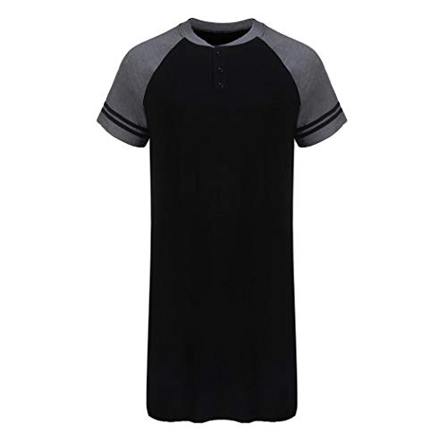 Tauser Hombres Manga raglán Remiendo Medio botón Largo Suelto Pijama camisón Pijamas .