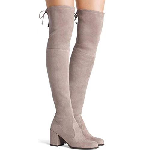 Tauser Suela de Goma de tacón Alto para Mujer con Cordones Botas largas de Invierno sólido Informal Botas .